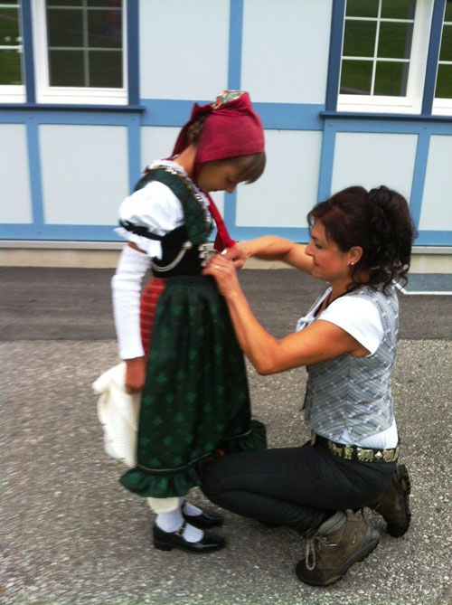 בתום הארוחה, רגע לפני שייצאו לאסוף את הפרות, הרועים הדגימו לנו את השירה המקומית. הצלילים העולים ויורדים וההרמוניות המופלאות הזכירו את סלסולי היודל, אבל בשונה מהם השירה הזאת היא ללא מילים. בימים הבאים נגלה סוגים נוספים של מוזיקה מקומית, בהם שירים הנקראים Ratzliedli – שירים הומוריסטיים, שגם מי שאינו מבין את המילים לא יתקשה להבין את העלילה המסופרת בעזרת תנועות ידיים והבעות פנים משעשעות. במהלך הקיץ אפשר לשמוע במסעדות, בברים וגם בפסטיבלים שונים את המוזיקה המסורתית של האזור – לרוב מלווה בנגינה של שני כינורות, צ'לו, דולצימר וקונטרבס, ולעיתים נוסף להם גם אקורדיון.