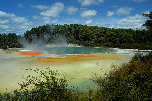 בין כל אלה, לא קל לבודד מקום אחד שראוי לתואר "וואו", ובכל זאת נעז ונציע את בריכת שמפניה הנמצאת בחגורת האש של ניו זילנד, במרכז האי הצפוני. בין הערים רוטורוואה (Rotorua) וטאופו (Taupo), באזור עשיר במעיינות חמים וגייזרים מתפרצים בריכת שמפניה (Champagne Pool) בולטת בצבעיה הבלתי הגיוניים. היא נקראת כך על שום המראה המבעבע שלה, כאילו היתה כוס ענקית של שמפניה – תוצאה של פליטת פחמן דו חמצני.