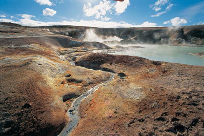 פי חמישה מנהר האמזונס התפרצות געשית מתחילה בהצטברות של מאגמה, אותו נוזל לוהט שעם קירורו הופך לסלע מוצק, בחדר מאגמה המצוי בעומק של שניים עד עשרה קילומטרים. הצטברות המאגמה יוצרת לחץ שמביא לעלייתה בצינור הר הגעש ולפריצתה בצורת לבה חמה, הממיסה את תחתית הקרחון. המים שזה עתה הומסו יוצרים לחץ הגורם להתרוממות הקרחון, וכתוצאה מכך נפתחים כל הסדקים, המחילות והחללים הוולקניים שהקרח סתם עם היווצרותו של הקרחון. כמויות המים מחלחלות לתוך הסדקים ומוצאות את דרכן לים בתוך 12־14 שעות. ב־1918, בפעם הקודמת שהקטלה התפרץ, זרמו המים לאוקיינוס במהירות עצומה, פי חמישה ממהירות זרימתו הממוצעת של נהר האמזונס באמריקה הדרומית. ביום שמש נדיר עלינו על ה"סקידוז", אופנועי שלג שהחלק הקדמי שלהם הוא מחליקיים, ורכבנו על קרחון מירדלסיוקול, שליד הר הגעש קטלה. השמש זרחה מעלינו, והאוויר היה קריר וצלול. מתחת לקרחון שעליו רכבנו נרקמה התפרצות געשית, אך מידת הסיכון לא היתה גבוהה. רק לעיתים נדירות חלה באיסלנד התפרצות שיש עימה סכנה ברורה ומיידית לחיי אדם. למזלם של 5,300 תושבי היימאי, באותה שעה עגן כל צי ספינות הדיג של התושבים בנמל האי הזעיר. עוד באותו לילה, במבצע ימי מרשים, פונו כל התושבים לאי הראשי של איסלנד ללא פגע. חלק מהתושבים חזרו כעבור ימים אחדים לבתיהם, שהתחילו להתמלא באפר וולקני, בניסיון להציל חלק מרכושם. ההתפרצות נמשכה כחודש, וחלקה השני התאפיין בסדרה לא רציפה של פיצוצים, שיצרו "הר אש" – הר חדש מדרום־מזרח ליישוב. עוד חמש דקות יהיה יותר גרוע כשמצלמים ממסוק, נהוג להסיר את דלתו. הרוחות הקרות והעזות שנשבו חדרו למסוק ואילצו אותנו לנחות על הקרחון. כיסינו את עצמנו בשכבות נוספות של גורטקס (חומר מבודד במיוחד) וחיככנו את ידינו ליד צינור הפליטה של המסוק, ממתינים שהגשם ייפסק. כעבור זמן לא רב חלף ענן הגשם, שלווה בענן שחור, והחלטנו לנצל את ההתבהרות כדי לטוס לאיזור הגייזר (Geysir) הגדול, שעל שמו נקראים כל אחיו בעולם. הגייזר, אחת התופעות הגיאותרמיות המרשימות באיסלנד, נולד מקרחוני הענק שבאי, הנמסים כל העת ומחליקים לאיטם. המים שנוצרים בהתמוססות הקרחונים זורמים דרך הקניונים הצעירים. בנופלם מגבהים משתנים, יוצרים המים רסס רב ומציירים קשתות צבעוניות כפולות ומשולשות, בזוויות בלתי שגרתיות. חלק מהמים מחלחלים דרך סדקים ומחילות וולקניות לבטן האדמה, ועם התקרבותם למאגמה האגורה במעמקים, הם מתחממים, הופכים לקיטור ומתפרצים בעוצמה לגובה רב. הגייזר הגדול פרץ לראשונה במאה ה־14, ומימיו הגיעו לגובה של 60 מטר, עד שבתחילת המאה ה־20 פרש ממלאכתו, וחדל להתיז רסיסים לאוויר. גייזר אחר, המכונה "בן דודו", מתפרץ גם כיום, אבל על אף שהוא צעיר ורענן מהגייזר הגדול, מגיעים מימיו לגובה של 25 מטר בלבד. יחד עם זאת, הוא מראה את כוחו כל כמה דקות, 365 יום בשנה.