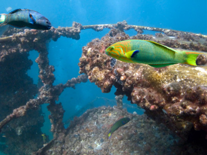 דגים שוחים לצד ספינה טבועה. תמיד יש תקווה למצוא אוצרות | צילום: אייסטוק