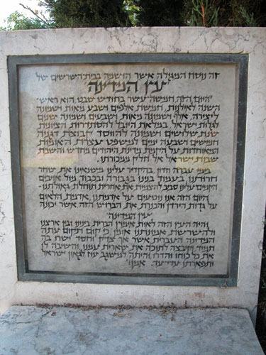 מגילת העץ "בימי עברה וזדון, בהקדיר עלינו משנאינו את שחר דורותינו, בעמוד בנינו בגבורה ובכבוד מול אויבים הקמים עלינו סביב להצמית את אחרית תוחלת גאולתנו. היום הזה אנו נוטעים על אדמתנו, אדמת הלאום, על גדות הירדן והכנרת, את הברוש הזה אשר יכונה 'עץ המדינה'. יהיה העץ הזה לאות אימוץ הברית בינינו ובין ארצנו ולהשרשת אמונתנו אומן, כי קום תקום עתה המדינה העברית אשר אך צדק וחסד ישרו בה תמיד וקיבצה לתוכה את שארית עמנו והשיבה לו את כל כוחו והדרו והייתה למשגב עוז לגאון ישראל ותפארתו עדי עד. אמן". איך מגיעים? ___ יעקב שקולניק – עוסק בתכנון שילוט תיירותי, מחבר הספר "מסע אל 101 עצים מופלאים בישראל", שראה אור בהוצאת עם עובד |