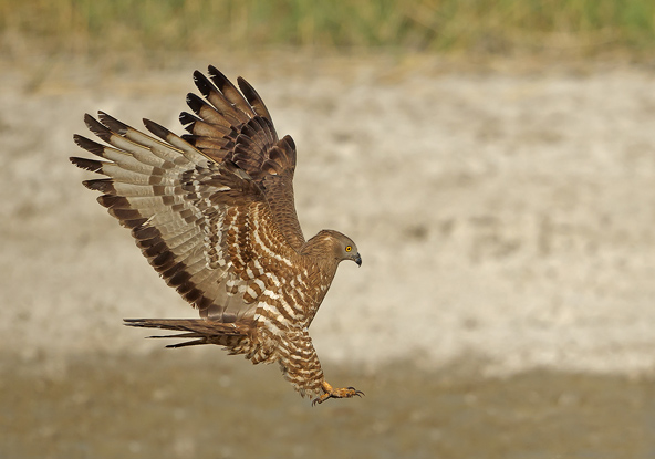 איית הצרעים יורדת לקרקע. ברגליה הקצרות והמוצקות היא חופרת קיני צרעות