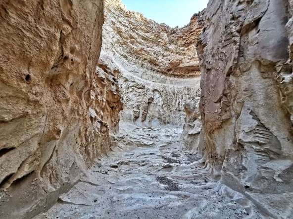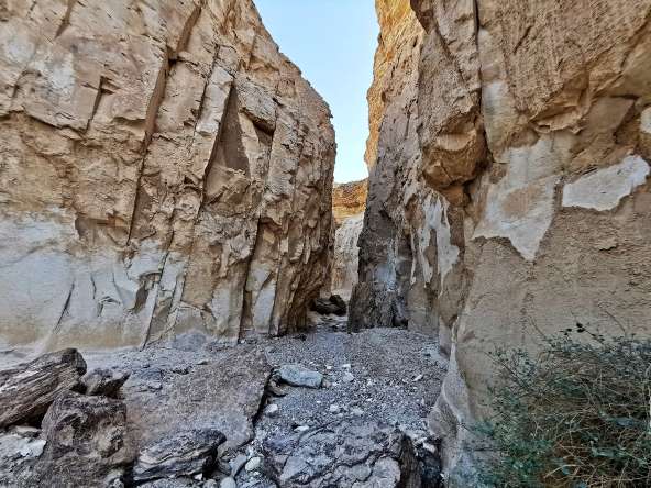 הסתובבתי וחזרתי אחורנית בנחל ציחור. באמצע הדרך הבחנתי בשביל שפונה מזרחה. הצצתי ב"עמוד ענן" וראיתי שיש שם שביל הליכה. עצרתי והתארגנתי… לפחות אלך קצת ברגל ניחמתי את עצמי על תחושת הוויתור. המסלול היה יפה, הליכה באפיק, עצי שיטה ואשל. אפרוחי קוראים שזו כנראה עונת הבקיעות התרוצצו לכל עבר, ציפורי שחור זנב פרשו זנב על ענפי העצים. אבל השוס האמיתי עוד חיכה לי. השביל הכניס אותי לקניון צר שהוביל אותי לארמון סלע טבעי.