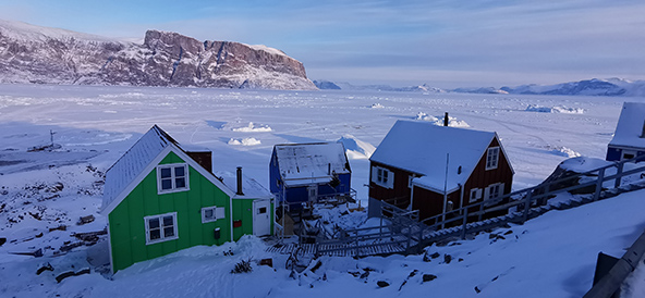 יישוב גרינלנדי – מקבץ של בתי עץ צבעוניים המשקיפים אל המפרץ הקפוא