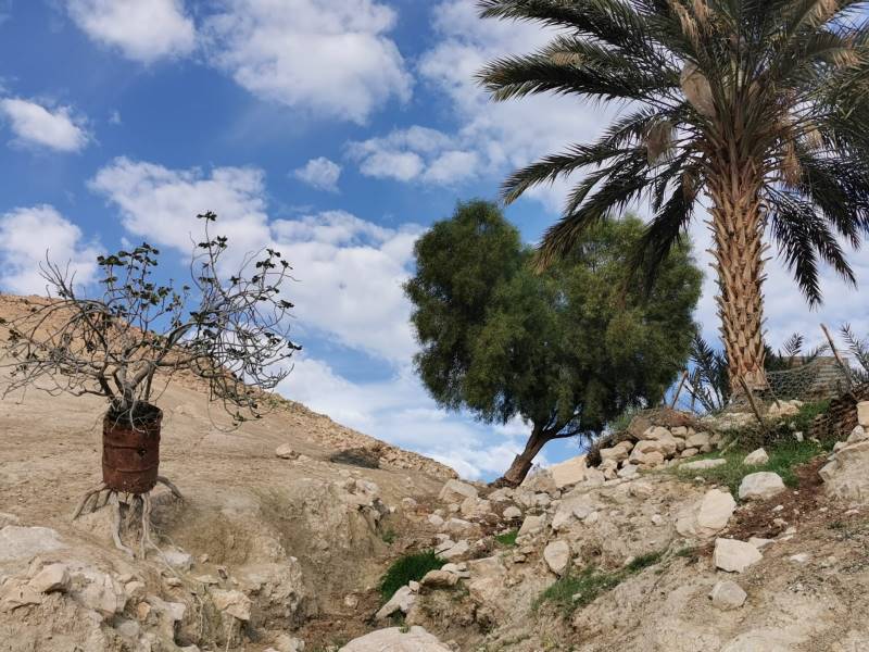 אני משער שכל עץ צעיר ורך היה נלעס עד תומו בפיה של עז רעבה, ולכן בחר הבדואי להקיף כל שתיל בהגנה של חבית ללא תחתית ומכסה