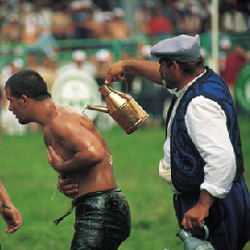 ![]() | גברים בשמן זית מדי שנה מתאספים בעיר אדירנה שבתורכיה כאלף גברים תורכים, ובמשך שלושה ימים הם נאבקים זה בזה כשגופם משוח בשמן זית. שליחי "מסע אחר" יאיר קדר וטימורטש אונן יצאו לאליפות האליפויות, תחרות ההיאבקות של קירקפינאר, שמתקיימת מאז 1361 לכתבה>> | |