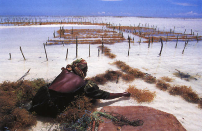| בעשור האחרון התפתחה בזנזיבר חקלאות אצות. תושבי כפרים במזרח האי מגדלים שני מינים של אצות ליצוא, המשמשים לתעשיות הקוסמטיקה, התרופות ואפילו הגלידות | צילום: משה שי |