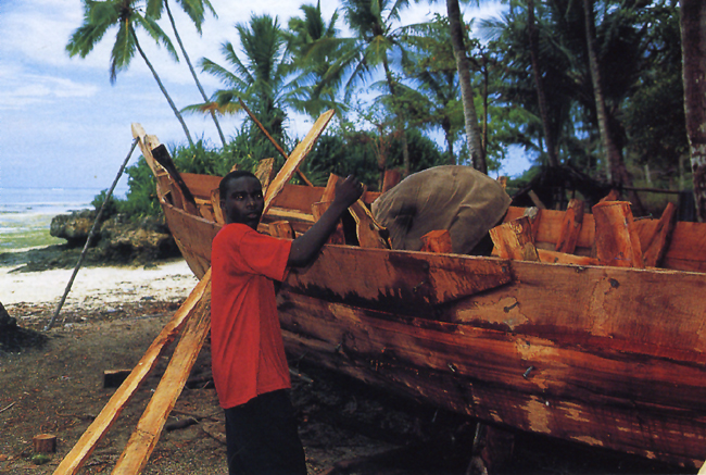 | בוני סירות דאו בנונגווי. על סירות כאלה הובילו תבלינים, בדים, שנהב וגם עבדים | צילום: גיל אל-עמי |