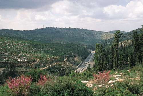 נמשיך מזרחה בדרך עפר המסומנת בירוק, ולאחר כקילומטר נגיע אל מצפה נהדר שהוכשר בצל עץ זית גדול. מתחתנו עובר כביש שער הגיא הדחוק בין רכס השיירות שעליו אנו ניצבים ובין רכס המשלטים שמעברו השני. ב-1948 לא עבר פה כביש מהיר אלא כביש צר שלערבים היה קל מאוד לחסום. על קטע כביש זה, משער הגיא ועד ירושלים, אמר יצחק רבין, מפקד חטיבת הראל במלחמת העצמאות: "מעולם לא היתה מלחמה כה עקובה מדם על שדה מערכה שאורכו עשרים קילומטר ורוחבו חמישה מטרים בלבד".