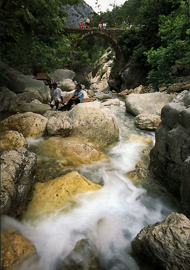 לאחר שמשלימים את הקפת הדולינה, יורדים חזרה מהכפר לגשר הרומי שעל הנהר. אם הזמן מאפשר זאת, יורדים בזהירות לגדה המערבית של הנהר ומתבוננים במערכת הנביעות והמבועים שלאורכה. חוזרים לג'יפים וחוצים את הגשר לגדה המזרחית, שם כדאי לשבת באור אחרון באחד מבתי הקפה הבנויים בתוך עצי הדולב הענקיים, התלויים מעל הנהר.
