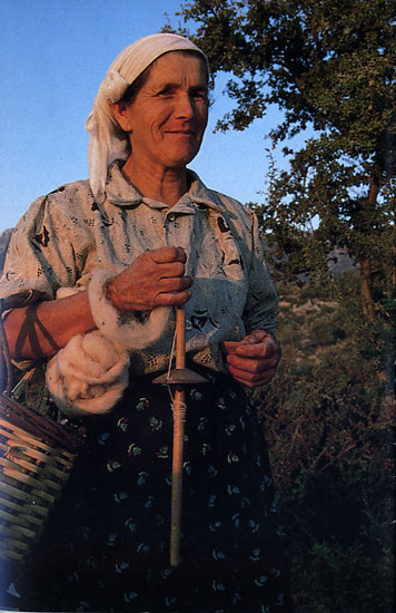 אשה כפרית עם סל צמר וכישור. התרבויות המפותחות שהיו כאן בעבר, דוגמת החיתים, אינן באות לידי ביטוי בציביון החיים הכפרי | צילום: דובי טל