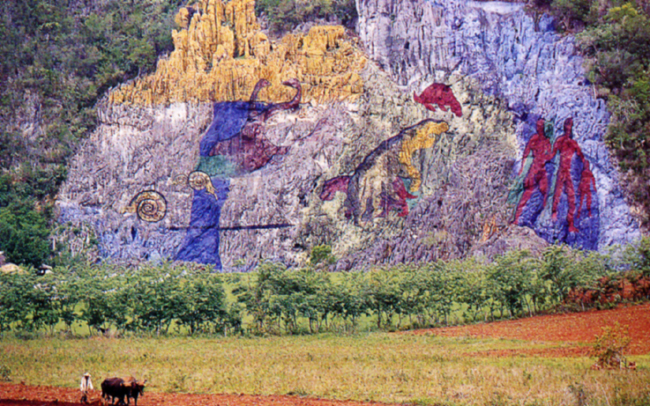 בהמשך הכביש ניצב ציור קיר ענקי, "אל מורל דה לה פרהיסטוריה" (El Mural de la Prehistoria) – דמויות אדם וחיות פרהיסטוריות שהצייר הקובני לֵיאוֹוִיחילדו גונסָלֶס מוֹרְיוֹ צייר על צלע הר בשנת 1961. בסביבת ציור הקיר אפשר לשבת בבר, לרכב על סוסים או לאכול חזיר צלוי במסעדה שממול לציור.