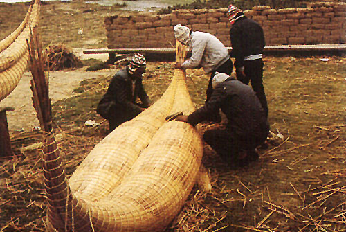 הגענו לימת טיטיקקה המשתרעת בין הרי האנדים בדרום- מזרח פרו ובמערב בוליביה בגובה 3,600 מטר מעל פני הים. זוהי הימה העבירה הגבוהה בעולם. מחוז חפצנו היה אחד מן האיים במרכזה, סוריקי, ששמעו יצא למרחוק בזכות בוני סירות הקנים המתגוררים בו. השם הצית אצלנו זכרון מתוך ספר שקראנו לפני מספר שנים, ספרו של האתנולוג הנורבגי תור היירדאל (HEYERDAHL), שהגיע כמונו לימת טיטיקקה כדי לצפות בבוני הסירות. מווטאחאטה (HUATAJATA), כפר קטן ושליו על שפת הימה, הפלגנו לסוריקי. בהנחיית כמה נערים הגענו אל ביתו של פאוליניו אסטבן המתגורר בקצה הכפר. היפנו אותנו אליו כמומחה הגדול מכולם לבניית סירות קנים. פאוליניוֹ ניצב בפתח בית חימר קטן; איש נמוך קומה ומוצק. הוא לבש שכבות אחדות של בגדים, ועטה על ראשו מין מצנפת אינדיאנית סרוגה, שכיסתה את אוזניו והגנה על ראשו מפני הרוח והשמש. לאחר חילופי ברכות הוביל אותנו אל מבנה קטן מול ביתו, וכאן נכונה לנו הפתעה: המבנה היה מוזיאון שבו הנציח פואליניוֹ את שיתוף הפעולה בינו ובין תור היירדאל המפורסם. עוד בטרם התאוששנו החל פאוליניוֹ להציג בפנינו תמונות ולהסביר איך נוצר הקשר. הוא דיבר בספרדית עילגת, שכן שפת אימו היא שפת האינדיאנים בני שבט האיימארה. הספרדית המעטה שאנו ידענו נרכשה כולה במהלכו של הטיול. למרות כל המכשולים האלה, ובעזרת החומר שהראה לנו פאוליניו, השלמנו את התמונה. תור היירדאל הוא נורבגי שרכש את השכלתו בארצות הברית, שם גם קיבל תואר בסוציולוגיה והתמחה בתרבות פולינזיה. במהלך מחקריו פיתח היירדאל את התיאוריה הגורסת, שתרבויות העולם העתיק ממסופוטמיה וממצרים קיימו קשרים פיסיים עם תרבויות עתיקות ביבשת אמריקה. כלומר, לדעתו האוקיינוס לא היווה חוצץ בין תרבויות מרוחקות אלה. באופן מקורי מאד לא הסתפק היירדאל בתיאוריה, והחליט לבצעה הלכה למעשה. בכוונתו היה לבצע הפלגות שיסייעו לו להוכיח את טענותיו, בדבר היכולת הטכנית שעמדה לרשות בני העולם העתיק לקיים את הקשר המסובך עם תרבויות בקצהו האחר של העולם. ב- 1947 הפליג היירדאל ברפסודה עשויה קורות בלסה קלות ושמה "קון טיקי" ( על שם מנהיג קדום של תרבות קדם- אינקאית), מפרו לפולינזיה. בהפלגה זו ביקש להוכיח כי תושבי פרו הקדומים היו עשויים להשתקע בפולינזיה. הפלגתה של " קון טיקי" ארכה 101 ימים. הצלחתו של המסע הוכיחה את טענותיו של היירדאל, והקנתה לו פרסום בעולם כולו. עד היום ניצבת ה"קון טיקי" במוזיאון מיוחד שנבנה עבודה באוסלו. ב- 1969 יצא היירדאל להרפתקה נוספת. בעזרת בוני סירות פפירוס מצ'אד נבנתה הספינה "רע", על שמו של אל השמש המצרי. "רע" היתה אמורה לחצות את האוקיינוס האטלנטי ולהוכיח את הקשר האפשרי, בן 5,000 השנים, בין המצרים הקדמונים לבין האוכלוסיה שהתגוררה באותה תקופה ביבשת אמריקה. ספינת הקנים הזו נבנתה על פי שרטוטי סירות דומות שנמצאו בקברים מצריים, ובעזרת הידע של הבונים האפריקאיים. מן ההיבט המדעי התבסס הנסיון על ההסכמה שהיתה בין כל החוקרים, כי סירות הקנים של פרו העתיקה דמו לסירות הקנים של מצרים העתיקה. גם אסכולת האתנולוגים והארכיאולוגים שדגלו בגישה ה"בדלנית", כלומר אלה שמכחישים קשר בן אלפי שנים בין תושבי אמריקה לתושבי העולם הישן, הסכימו לצירוף המקרים הזה שמציג הדמיון בין סירות הקנים של שתי התרבויות. אלא שהבדלנים ניצלו נקודה זו כדי לומר, ששתי תרבויות שהשתמשו בקנים לבניין כלי השיט שלהן לא יכלו לקיים קשר על פני מרחבי האוקיינוס, כיוון שסירת קנים אינה יכולה לחצות את אוקיינוס. בעלי הדעה ההפוכה, המכונים ה"פיזוריים", לא יכלו לבלוע את ההנמקה. הם נשארו משוכנעים כי מקסיקו ופרו קיבלו איזה דחף קדום מעבר לים. אך איזה ים? ובאילו אוניות? בספרו "רע" כתב היירדאל: "אנו חייבים לשוב לאנדים ולהעיף מבט שני בסירות הקנים האינדיאניות. בני הזוג אינגסטד באו עימנו, כדי שנראה להם כי הוויקינגים לא היו היחידים שהיו עשויים לבנות ספינות הדורות. ביום שבו ננעל הקונגרס ( שבמהלכו התלהט הוויכוח בין הבדלנים לפיזוריי