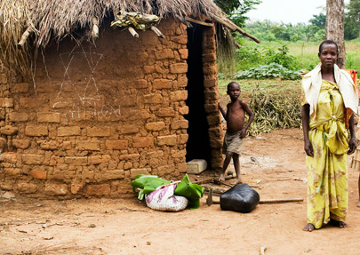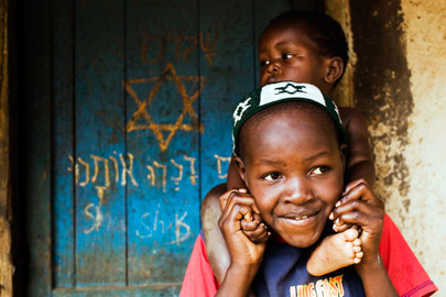 נכנסנו לבית הלבנים הקטן. הוא היה אפלולי, ורצפת הבטון שלו פריכה, כמעט שברירית. היו בו שני חדרים עם ריהוט מינימליסטי, שהסתכם בספה דהויה ושרפרף בחדר המרכזי, וחדר נוסף לשינה, שנערמו בו מזרנים על מחצלת דקה. בעלת הבית הציצה בביישנות מעברו השני של החדר, וניכר בה שהיא מרוצה מביקורו של אורח מארץ הקודש. על אחד הקירות נפרש בד לבן ועליו התנוססו אותיות האלף-בית. פנחס, בעלה, סיפר לנו שמדי שנה מגיעים יותר ויותר מבקרים לראות את חיי הקהילה הייחודית שלהם, בני האבאיודיה (Abayudaya). אסור להשתמש בתרופות