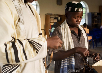 תזכורות לחיים יהודיים בני האבאיודיה מנהלים אורח חיים של סובלנות, כבוד ושכנות טובה. בכפרים פזורים בתי אבן ובתי בוץ קטנים, עם שבילי עפר אדומים ביניהם. את בתיהם של בני הקהילה אפשר לזהות בנקל על פי ציורי גיר של מגן דוד וסמלים יהודיים אחרים המתנוססים על דלתות, קירות וחלונות הבתים. לרובם אין מזוזות על משקוף הדלת, וציורי הגיר הם הסימן היחיד המבדיל בין בתי היהודים לאלה של שכניהם. נשים נשואות עם כיסוי ראש קיבלו את פנינו, והראו לנו תזכורות מגוונות לחיים יהודיים – חנוכיות, פמוטים פשוטים, סידור ועוד. לאפריקה קולות וצלילים רבים המאפיינים את השבטים השונים. כשחלפנו על פני אחד הכפרים ביום ראשון נשמעו קולות קריאה שהתנגנו מתופים אפריקאיים וקידמו בברכה את המתפללים בכנסייה. בעבר גם אצל בני יהודה היו תלויים בפתח בית הכנסת שני תופים גדולים שבישרו על התפילות. בני הקהילה ויתרו על מנהג זה, אך היום עדיין אפשר לשמוע את שירתם הערבה המלווה את התפילות.