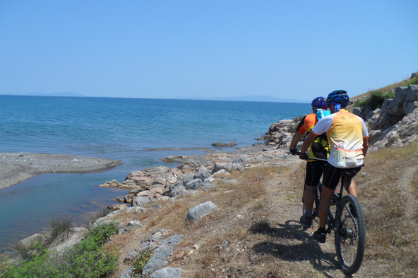 ביום השני הוסענו לאגיוס גיאורגיוס (Agios Georgios). ליד כנסית סנט ג'ורג' פרקנו את האופניים מהרכב המוביל וטיפסנו כ- 150 מטר ומשם ירידות ומישורים לכיוון צפון מערב אל הים.
