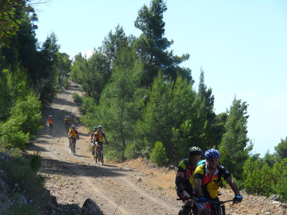 ביום הראשון הוסענו לקרבת הכפר דמיה (Damia), ומגובה של כ- 450 מטר מעל פני הים התחלנו לגלוש בדרך עפר לכיוון מערב. הדרך עוברת בתוך יער עצי אורן. בחלק מהעצים נעשו חריצים בדומה לאות V, כשלחלק התחתון של החריץ מחוברת שקית ניילון המתמלאת לאיטה בשרף האורן. השרף נקרא רצינה. זה הזכיר לי את דבריו של מר דברה בשירו של נתן אלתרמן, המדבר בין השאר על הברחת רצינה. בשיר הכוונה למשקה אלכוהולי הקרוי רצינה, ויש בו קצת טעם של שרף האורן. את המשקה והטעם בדקנו באחד הערבים ליד שולחן הטברנה.