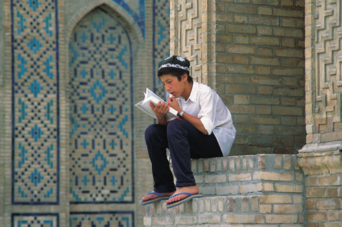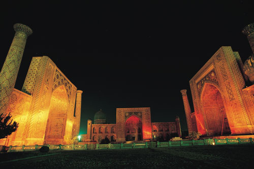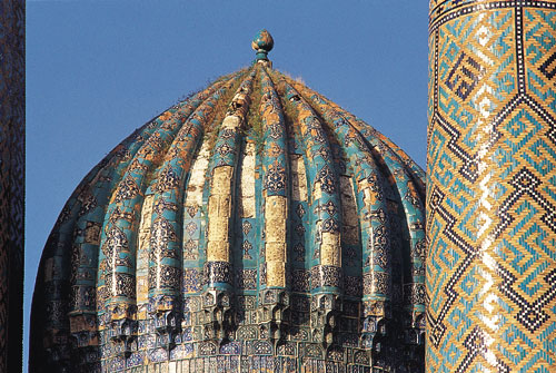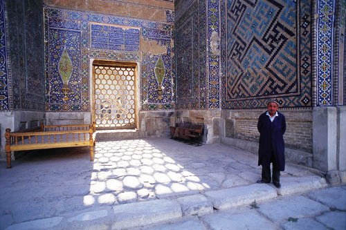 געגועיו של הנמר מסמרקנד בחורף 1497, בסמרקנד, כתב נער בן 15: "בעולם כולו, מעטות הערים שהמיקום שלהן נעים כל כך. האם לא נוסדה בידי אלכסנדר, והאין היא נודעת בשם 'העיר השמורה'? פקדתי להקיף את חומתה ומצאתי שאורכה עשרת אלפים ושש מאות צעדים". באבור, "הנמר", כתב את הדברים לאחר שכבש בראש צבא קטן את סמרקנד; כעבור פחות מ־100 ימים נאלץ לברוח מן העיר. על הקרב הראשון בחייו פיקד בגיל 12, מיד לאחר מות אביו, כאשר דודיו ניסו לגזול ממנו את הירושה של נסיכות עמק פרגנה (Fergana, מזרח אוזבקיסטן). סמרקנד הישנה היא מבוך מאובק של סמטאות צרות, תעלות ביוב פתוחות ועשן של בשר נצלה, שמתוכו מזדקרים כמה מפלאי הארכיטקטורה של כל הזמנים. ביום הראשון הצירוף הזה היכה את חושי בשיתוק. ביום השני התחלתי לראות: את כיכר רגיסטאן הכבירה עם שלוש המדרסות (מדרשות ללימודי הדת) המפוארות שלה, בהן בית האולפנא של אולוג בג, הנאור בשליטים משושלת תימור, בעצמו מדען ואסטרונום מהולל; את קשת השער הכחול להפליא ואת כיפת חלילי הטורקיז של גורי אמיר, המאוזוליאום המעודן של תימור האכזר, הקבור עם מורו הרוחני וצאצאיו הקרובים בחלל נסתר מתחת למצבות סרק. צריך להתרגל למשחקי הצבע והאור המשתנה כדי להעריך את האמנות הזו, שצמחה מתוך המדבר, ואת השחזור המעולה שלה, למשל במסגד יום השישי הנהדר, שאותו בנתה ביבי חאנום הסינית לבעלה תימור. מאז העצמאות, הספיקו האוזבקים לשחזר מספר לא ייאמן של אתרים שעמדו בהריסותיהם, ובנאמנות מעוררת כבוד. שערי רחבת המסגד נפתחים לתוך אלף הצבעים, הריחות והקולות של הבזאר ההומה. מאות שנים היו המאמינים עוברים מהמולת השוק לשלוות התפילה, עד שהחינוךהקומוניסטי רוקן את המסגדים והפך אותם למוזיאונים מתים, שגם נשיא הרפובליקה בעל השם המטעה קצת, איסלאם קרימוב, מעדיף לשמר כאתרי תיירות, בלי תפילות ובלי מאמינים, כי הוא, כרוב בני עמו, חי בצל האיום של הפונדמנטליזם האיסלאמי המתפשט מן המדינות השכנות: אירן, אפגניסטן, טג'יקיסטן.