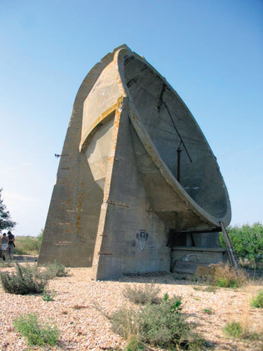 בואו הצטרפו אלי למסע אווירי מהיר לאורך החוף המזרחי של האיים הבריטיים. התחלת המסע תהיה אי שם בצפון־מזרח, באזור העיר סנדרלנד (Sunderland), והסיום יהיה מדרום לצוקי דובר (Cliffs of Dover) המפורסמים, בדרום־מזרח האיים הבריטיים. לאורך המסע הדמיוני הזה, אם רק תדעו לאן להפנות מבטכם, תוכלו להבחין על ראשי גבעות וצוקים בכמה וכמה מבנים מוזרים דמויי צלחות עמוקות הנפערות אל שמי המזרח. אם תתקרבו קצת לצלחות המשונות הללו תראו שמדובר בקערות אבן ענקיות שקוטרן שישה עד תשעה מטרים! מקצתן חצובות במצוקי הגיר שלאורך החופים, ומקצתן בנויות מבטון מזוין שקליפתו החלה להיסדק ולהיאכל בשיני הזמן. באחד המקומות בדרום קנט (Kent), בעיר דאנג'נס (Dungeness), אף תוכלו להבחין בחומה קעורה שגובהה כשמונה מטרים, המשתרעת לאורך של כשישים מטרים.זה נשמע כמו הפצצה מה קורה כאן? האם מדובר במבנים מגאליתיים קדומים מלפני 4,000 שנה, או שמא הבריטים עוסקים בפרויקט סודי כלשהו שנועד לאתר חייזרים מחוץ לכדור הארץ? התשובה כמובן פשוטה הרבה יותר, אבל מרגשת לא פחות: מדובר במראות הקול (באנגלית, Sound Mirrors) – שרידיה של טכנולוגיה ישנה שהיתה חלק ממערך ההגנה האווירית הבריטי בימי מלחמת העולם הראשונה. יעילותן הרעיון היה פשוט: לבנות צלחת בטון אקוסטית שתרכז את גלי הקול ותשמש מעין מגבר. ליד מרכז הצלחת ישב מאזין והצמיד לאוזנו שפופרת האזנה – חרוט דמוי חצוצרה מחובר לצינור גומי. בעזרתה היה אפשר לקבוע את מקור הקול ולזהות מאיפה מגיעים המפציצים הגרמניים |