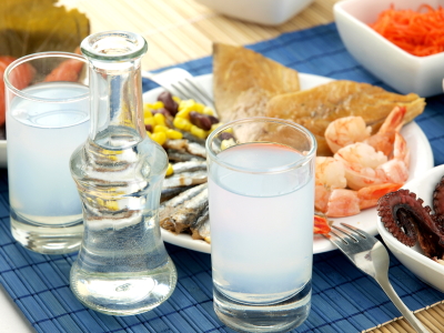 אוזו (Ouzo): המשקה החריף המקומי, עם אחוזי אלכוהול מרשימים וניחוח אניס (דומה לערק) שאין לטעות בו. לידו מקבלים כוס מים כדי למהול אותו לפי טעמכם.