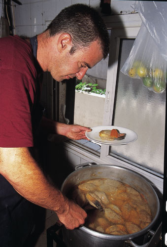 נחיתות למה שקורה מתחת לאף. ומה שקורה הוא מצב מרתק, חד־פעמי ומאוד טעים. המושג החבוט "קיבוץ גלויות" מקבל משמעות נהדרת בהקשר של אוכל. בישראל מתקיים היום מצב שהוא חלומו של כל גסטרונום. יהודים הגיעו לכאן משבעים גלויות והביאו איתם עשרות מטבחים בהם המרוקאי, הטוניסאי, הטריפוליטאי, התורכי, היווני, התימני, הבולגרי, העיראקי, הכורדי, ההודי, הסורי, הגרוזיני, הבוכרי, המצרי, הספרדי, האיטלקי, הרומני, ההונגרי, הרוסי, האוקראיני והפולני – ובאחרונה גם האתיופי. בעצם, המספר גדול יותר, כי בכמה מקרים יש תתי־מטבחים: המטבח של יהודי רומא שונה מהיהודי־הוונציאני; יוצאי הודו עשויים להימנות עם אחת משלוש עדות שונות, שלכל אחת מהן מטבח משלה: העדה הקוצ'ינית, עדת בני ישראל והעדה הבבלית. עד כמה אנחנו נהנים מהשפע הזה? כמה זמן הוא ישרוד? כיצד יתפתח? בשורות הבאות – כמה קווים לדמותו של האוכל האתני בישראל על סף האלף השלישי. כיסן שמנמן במרק עוף זהוב את האוכל האשכנזי אפשר למצוא בהרבה מסעדות. בנקודת זמן מסוימת הפכה ההליכה למסעדות אלה לאופנתית אצל הצעירים, לאו דווקא יוצאי פולין ורוסיה. לדוּדי שיק, טבח צעיר ומוכשר, היתה מסעדה כזאת בפלורנטין שבתל־אביב. במקום שנראה כפאב יותר מאשר מסעדה, בישל שיק אוכל הונגרי לקהל הצעיר של השכונה. לפני כשנה הוא סגר את המסעדה, ועכשיו הוא הטבח של "בֶּבָּלֶה" – עוד מקום יהודי־יאפי, ספק מסעדה ספק פאב, בצפון רחוב בן־יהודה בתל־אביב. שיק הולך על הצד הדשן של "האוכל היהודי". ההשראה העיקרית היא המטבח ההונגרי, העשיר והמתוחכם מהמטבחים היהודיים־אשכנזיים. מרק העוף שלו זהוב כהה, מתובל ומרוכז, ובתוכו משייט כיסן שמנמן, מלא בשר טחון, מעורב בבצל. לא רחוק משם, בפינת הרחובות ארלוזורוב ודיזנגוף, נמצא מוסד תל־אביבי ותיק, "קפה בתיה". ביום חול יושבת ליד אחד השולחנות גברת קשישה. מולה צלחת גפילטע־פיש וצלוחית של חזרת אדומה. היא נראית כמו אחת שיודעת להכין את הדג הממולא בעצמה, אבל אולי כבר אין בשביל מי; או שאין כוח. האמת, בזמן האחרון האוכל ב"בתיה" די מזעזע. אבל בימי שישי המקום מתמלא בצעירים וזקנים שמחפשים טעמים מהבית וגם חברה. קוּבֶּה, סָלוֹנָה ואָנְגְריֶי בשר וחצילים ביקשתי מלינט דלווה, ילידת איסטנבול ובעלת קייטרינג משובח המבוסס על המטבח התורכי, מתכון לעוגיות תורכיות מיוחדות של ראש השנה. "בשביל מה את צריכה את זה?" שאלה לינט בחשדנות, "למי היום יש סבלנות להכין את העוגיות האלה. זה לא בשביל נשים מודרניות". במבוא לספרה החדש "המטבח היהודי" מתארת קלודיה רודן הכנה של ארוחה בבית