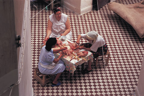 • מפת מרוקו » חלק קטן אך חשוב בפסיפס של המטבח המרוקאי הוא המטבח המרוקאי היהודי. אוכל יהודי התפתח בכל מקום שבו היו יהודים. הוא מבוסס על מסורות בישול וחומרי גלם מקומיים, אבל לאורך השנים נעשו בו שינויים, עיבודים והתאמות לחוקי הכשרות ולמנהגי אכילה שקשורים בחגים ובטקסים יהודיים. הזהות היהודית בגלויות השונות לא התבססה על טריטוריה או על גבולות פיזיים, ולכן, כנגזרת חשובה ומעשית של הדת, הפכו האוכל ומנהגי האכילה למרכיבים חשובים בהגדרת הזהות הייחודית, תוך הבדלתה מן האחר, השונה, הגוי. התוצאה היא מבחר מרהיב של מאכלי חמין למיניהם. הם זהים זה לזה בכך שהם מאכלים המתבשלים לאיטם במשך שעות ארוכות, ובו בזמן הם שונים זה מזה בהתאם לתרבות, למסורות הבישול ולחומרי הגלם באיזור הגיאוגרפי שבו התפתחו. בחגים היתה הזהות היהודית מקבלת מעין משנה תוקף, ולהגדרה נוספו מסמנים ברורים, בין השאר בעלי ביטוי קולינרי מובהק. כזה הוא המטבח היהודי שהתפתח במרוקו, והוא בהחלט שונה מהמטבח המרוקאי שהתפתח בארץ. משעלו יהודי מרוקו לישראל, השתנו באחת הרבה נתונים בפסיפס המורכב שיוצר "מטבח", ועם שינוי הנתונים השתנה גם "המטבח". עדות רבות שנאלצו לוותר על מרכיבים שונים של שייכות וזהות כמו נאחזו בציפורניהן בדבר אחד – במטבח שלהן. אבל גם הוא, תחת כובד האילוצים של התנאים ובהשפעתם של שכנים חדשים, יהודים גם הם, המכינים אוכל אחר, שונה, זר ומוזר, עבר שינויים. המצב הכלכלי הקשה בשנות החמישים הכתיב מדיניות של צנע, ואילץ את העולים ממרוקו להשתמש בתחליפים ל"דבר האמיתי": עוף במקום כבש, רסק עגבניות במקום עגבניות טריות, שמן חריע במקום שמן זית, דגים קפואים במקום טריים. אבל, לתפיסתי, גם אלה נכנסים תחת ההגדרה הרחבה של "מטבח מרוקאי אותנטי", לא פחות מזה שמכינות נשות "יקוט". |