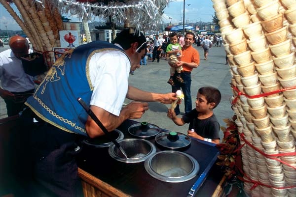 בתמונה: מוכר גלידה באיסטנבול. לצד הגלידה, הקונים זוכים גם להצגה משעשעת