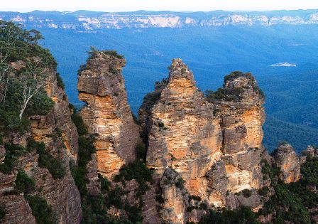 ההרים הכחולים ההרים הכחולים, שקיבלו את שמם בשל הערפילים הכחלחלים שעולים מעצי האיקליפטוס שמכסים אותם, הם חלק מרכס הרים אדיר שעובר לאורך החוף המזרחי של אוסטרליה – The Great Dividing Range. זוהי שמורת טבע המוכרת כאתר מורשת עולמי, כמאה ק"מ מדרום לסידני. בשטח השמורה יש אזורים הרריים (הפסגה הגבוהה ביותר מתנשאת לגובה של 1,000 מ'), מישורים ירוקים, מצוקים דרמטיים, נהרות, מפלים מרשימים וכמה עיירות. מהעיירה קטומבה יוצאים סיורים מאורגנים ברחבי השמורה. אל תחמיצו את שלושת הסלעים המדהימים שזכו לשם "שלושת האחיות" (The Three Sisters).