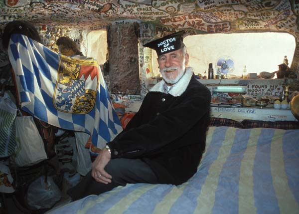 הברון ארוויד פון בלומנטל נולד בלטביה לפני 79 שנים, אבל דבר מעברו האירופי אינו ניכר בו. בלומנטל עזב את מולדתו אחרי מלחמת העולם השנייה והיגר לאוסטרליה, שם הוא זכה לכינוי קרוקודיל הארי. הוא חובב אלכוהול, נוטה לנבל את פיו, וגם בזקנתו הוא מוקף בנשים. הוא הגיע לקובר פדי (Coober Pedy) בדרום אוסטרליה לאחר ששמע כי בתוך חצי שנה אפשר להפוך שם למיליונר מכריית אבני לשם. "החלטתי להישאר שנה ולהפוך למולטימיליונר", אמר. "זה לא קרה". בלומנטל כרה בור ענקי באדמה בחיפושיו אחר האבנים הטובות. משלא מצא דבר, הפך את הבור שלו למקום מגורים. לימים היה המכרה, שהפך לבית, מלא עד אפס מקום בחפצי אמנות. אמנים שביקרו שם תרמו ציורי קיר, פסלים, יצירות חצובות באבן וחפצים שנוצרו משאריות ברזל שנמצאו בסביבה. טינה טרנר תרמה את חזייתה, וכך התחיל לו אוסף ענקי של פרטי הלבשה תחתונה שמבקרות נלהבות השאירו במקום. צילומי הסרט "מקס הזועם 3" צולמו בחלקם במערה של קרוקודייל הארי, ועד היום אפשר לראות בפתח הבית פסל מנגן מגרוטאות מתכת שצוות ההפקה בנה והשאיר שם למזכרת.