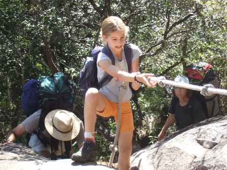 יום חמישי: אנשים טובים באמצע הדרך אחרי יום של מנוחה חזרנו למסלול. לפנינו מחנה אחרון, גם הוא עם מפל שנחשב ליפה במיוחד. מצב הרוח השתפר, המשבר מאחורינו, התיקים כבר לא ממש כבדים. פגשנו אנשים נפלאים שהתגייסו לעזרתנו. ראינו מטיילים שהתמודדו עם קשיים כמו נעל שנקרעה, נקע ברגל – אף אחד לא נשאר לבד עם צרתו, ההתגייסות מדהימה ונותנת תחושה של ביטחון ואמון בבני אדם, רגעים של קרבה. קטעים מתוך יומנה של מיכל: "…ההתחלה היתה די קשה, כי היה טיפוס רציני, אחר כך רוב הדרך היתה סבבה, עד שהיו עוד כמה טיפוסים קשים, אבל עברנו את כולם. הגענו למחנה (אחרי עצירה בנחל לאכול ולנוח) ואכלנו ספגטי עם רוטב ופרמזן כי איש נחמד (האיש מאתמול..) הביא לנו גז. אחר כך הלכנו למפל שליד המחנה, התרחצנו שוב, ולמרות שהמים היו די קרים זה היה מרענן. ישבנו על הסלעים ואכלנו פיצוחים שהבאנו מבעוד מועד. עכשיו אנחנו מעבירים את הזמן עד שנלך לישון (מכינים מרקים). הלילה האחרון פה! לפני כמה דקות ראינו ציפור צבעונית (אמא שלי אומרת שקוראים לה Noisy Putta bird), שכתוב שהיא מאוד חמקנית ואפילו צילמתי אותה".