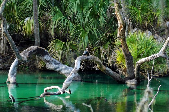 בלו ספרינגס אתר נוסף של מעיינות, במרחק ארבעים דקות נסיעה מאורלנדו, הוא פארק בלו ספרינגס (Blue Springs), הגדול ביותר מבין המעיינות של נהר סנט ג'ונס. בפארק היפה יש שפע של צמחייה וערוץ רחב עם מים צלולים בטמפרטורה נעימה של 22 מעלות צלזיוס. בחורף, מאמצע נובמבר ועד אמצע מרץ, אפשר לראות גם פה את תחשי הנהרות בהמוניהם, ואז הכניסה למים אסורה, אבל בשאר השנה המים החמימים מזמינים להיכנס אליהם לשחייה ושנירקול או לצאת לשייט. אתר אינטרנט איך מגיעים? נוסעים לכיוון צפון על כביש I-4 E  פארק בלו ספרינגס. מים צלולים מוקפים בצמחייה שופעת