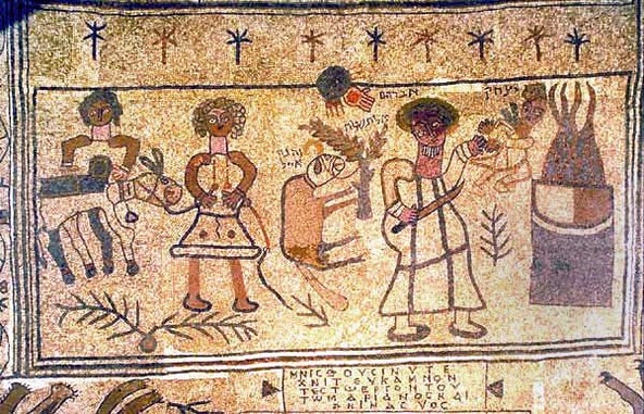 הפסיפס המתאר את עקדת יצחק בבית הכנסת העתיק בגן הלאומי בית אלפא