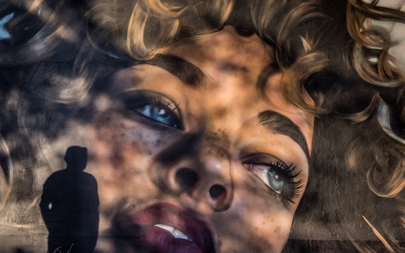 ציור קיר על האנגר ברובע האמנים בערד | צילום: אייל תמיר