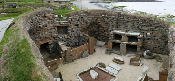כל האתרים האלה הם רק הקדמה לאתר שמהווה את שיאו של הביקור באי: סאקרה ברי (Skara Brae). זהו כפר בנוי מאבן מהתקופה הניאוליתית שמאפשר להציץ אל חיי היום-יום בתקופה ההיא (3200 – 2200 לפנה"ס) ולהתרשם מפנים הבתים, כולל ריהוט אבן, מערכות ניקוז וחימום ועוד.