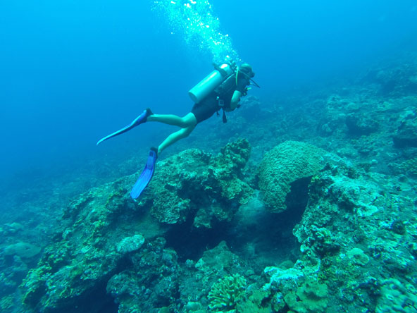 המדריך שלנו הכתיר את הצלילה האחרונה כאחת המוצלחות שהיו לו בחייו, ומזג לנו כוס תה לצד הפיצה. סיימתי את היום עם חיוך ענק על הפנים, אבל הרגשתי שזה עוד לא זה. האי היה אכן בודד לגמרי, אך רחוק מלהיות מפנק: הוא היה יותר הרפתקה, פחות רוגע. החלטתי להמשיך צפונה. לברוח מהעולם לונג איילנד הוא ההגדרה המילונית לאי בודד. אכסניה אחת בלבד מוצעת לתיירים (שמה בלו פלנט), מנוהלת על ידי אמא ובן בריטים, שעברו מאנגליה האפורה לגן עדן של שמש. מועדון צלילה אחד מציע צלילות בהם סביר מאוד שתהיו בני האדם היחידים במרחק קילומטרים. נחשי ים, צבי ים ודגי אריה פופלריים באזור הזה, ולפעמים ניתן לראות אותם אפילו בשחייה מהחוף עם מסיכה ושנורקל.