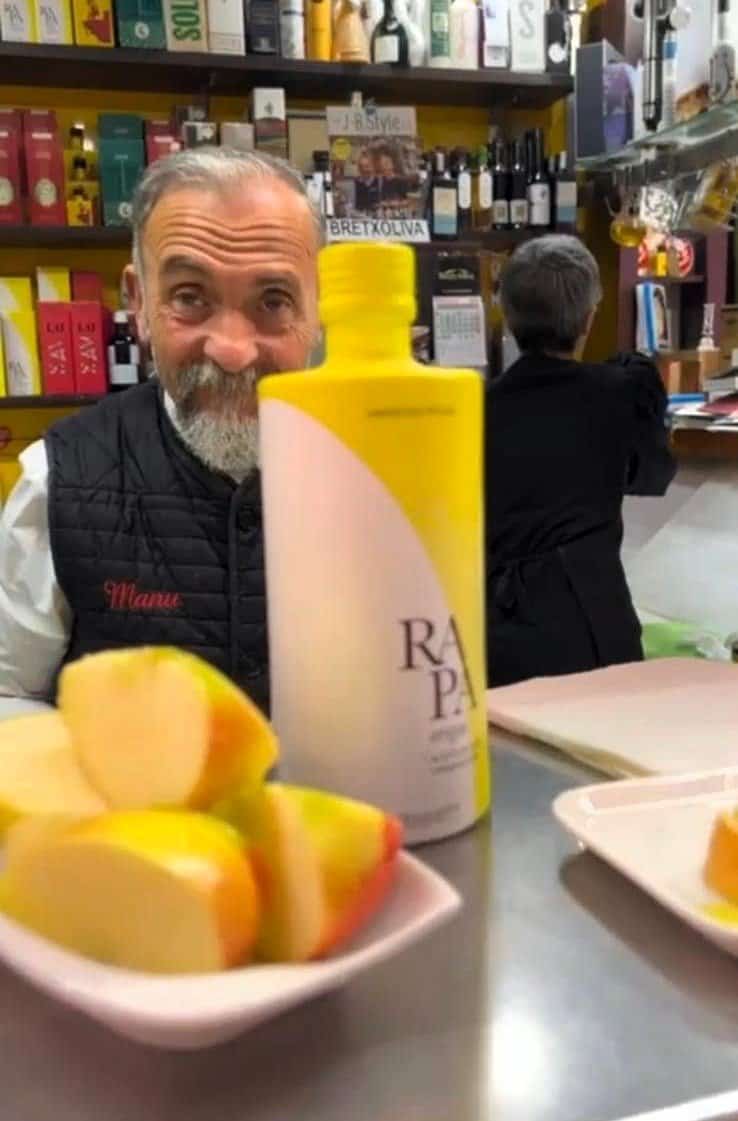 כשאני מגלה עניין בשמן זית ספרדי בעת הסיור בשוק, גרגורי מספר שייצר בעבר בפרובנס שמן זית ומציע לי חוויית טעימות שמן ספרדי בחנות של מנואל ואורליה שנחשבת לאחת החנויות המובילות בספרד המתמחות בשמן זית.