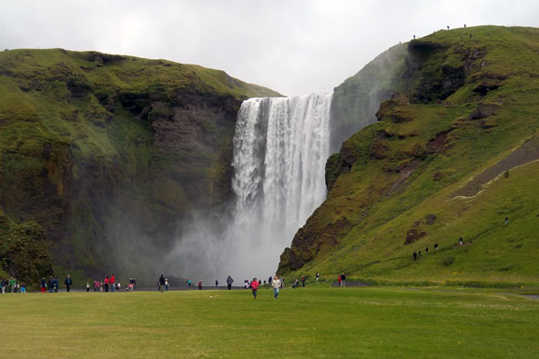 מפל סקוגפוס. הקרחונים מזינים את הנהרות בשפע של מים, וכמות המים האדירה יוצרת אינספור מפלים מרהיבים