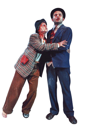רמי הויברגר ודב נבון בהפקה של "מחכים לגודו" בתיאטרון הבימה צילום: ג'ראר אלון |