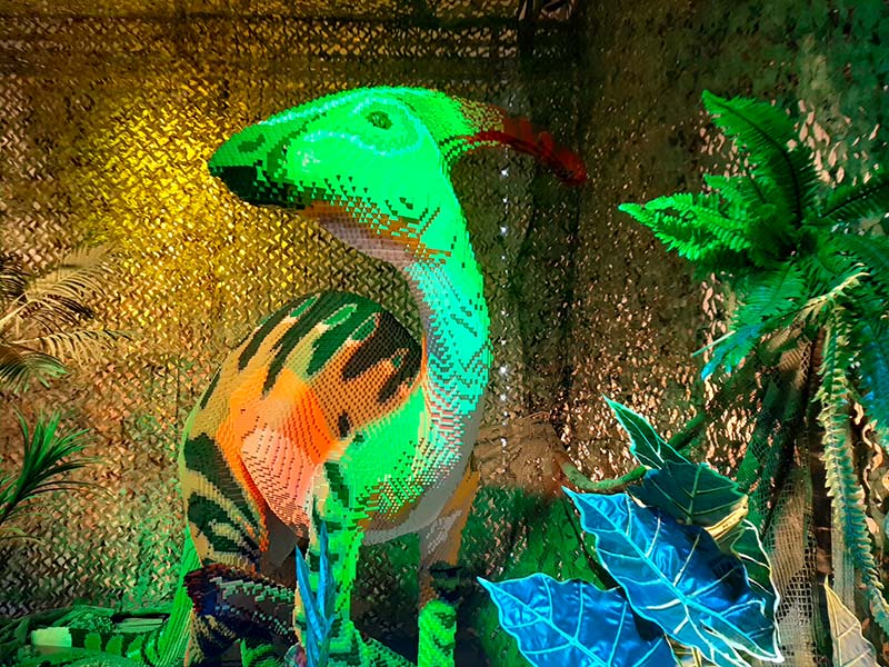 בהאנגר מרווח וממוזג בשדה הנטוש מוצגת תערוכת לגו בינלאומית, ובה 50 מיצגי דינוזאורים הבנויים מיותר מ-10 מיליון קוביות לגו. הדינוזאורים מוארים בשלל אורות צבעוניים, חלקם זזים ומשמיעים קולות נהמה. לצד כל אחד מהדגמים יש שלט המציין את סוג הדינוזאור, כמה עובדות מעניינות עליו, מכמה קוביות לגו הוא נבנה, כמה אנשים עמלו להכין אותו וכמה שעות נדרשו לכך. בהמשך, יש חלל גדול מאוד עם בריכות של קוביות לגו מחולקות לפי צבעים, שמהן ילדים יכולים לבנות דגמים משלהם. עוד בתערוכה: סימולטורים, קונסולות אקס בוקס והקרנה של סרט עם דמויות לגו. בהתאם לתו הסגול, יש לתאם שעת הגעה. למידע נוסף ותיאום שעת ביקור היכנסו לאתר. הכניסה בתשלום, בחלק ממלונות העיר מציעים הנחות ומבצעים.