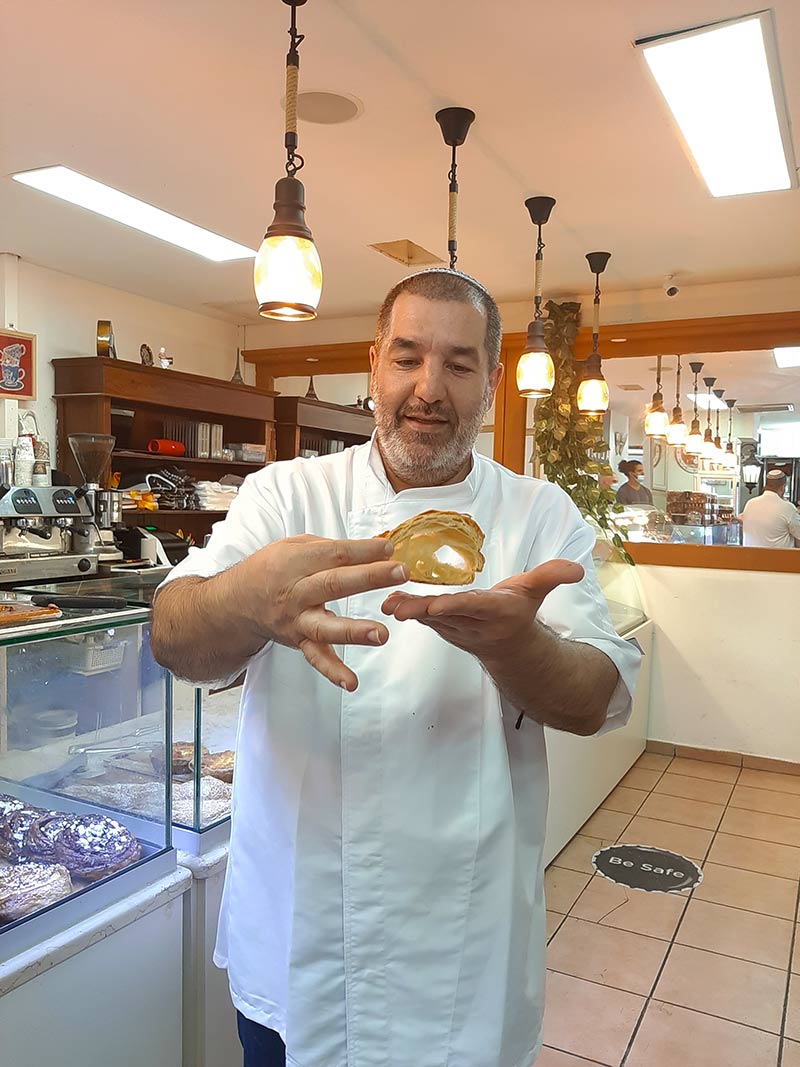 מתוק לי מתוק לי: קונדיטורית אלימי. בתמונה התחתונה, אבי אלימי ופרוסת קרואסון אוורירי | צילומים: רותם בר כהן