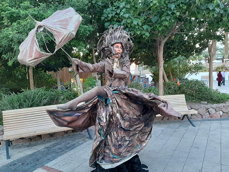 עד כאן הפרטים הטכניים, מכאן מתחילות החוויות. על מנת להחזיר את התיירים אל העיר ולספק תעסוקה לתושבים המקומיים, תאגיד התיירות של אילת יצא בפרויקט מקסים, שכל הצדדים המשתתפים בו יוצאים מורווחים: 101 חוויות ב-0 שקלים. וכך, ברחבי העיר אפשר ליהנות ממופעי רחוב, סדנאות, סיורים מודרכים ועוד, והכל בחינם. העירייה משלמת למדריכים, למעבירי הסדנאות ולאמנים המשתתפים, שסוף סוף יכולים לנשום לרווחה אחרי שלא עבדו במשך חודשים ארוכים, והמבקרים בעיר נהנים מתוכן איכותי ומגוון מאוד המתאים לכל הגילאים מבלי לפתוח את הארנק. אנחנו השתתפנו בשתי סדנאות כאלה: סדנת ציור מול הנוף באמפיתיאטרון הרודס, כשהרי אדום והים מהווים רקע מושלם לציירים מתחילים כמונו וסדנת טיקטוק שמתאימה לצעירים שבחבורה (ולהורים שלהם שרוצים להבין מה קורה בעולם הפחות מוכר הזה).