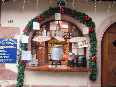 הגשם פסק ואנחנו המשכנו לנסוע בדרך היין האלזסית, כשהיעד הבא הוא העיירה ריקיאוויר (Riquewihr). זאת עיירה מוקפת חומה, והרחוב המרכזי שלה הוא אחד היפים שראינו בדרך היין. ברחוב שררה אוירה קסומה. עשרות אנשים מילאו אותו ואת הסמטאות היוצאות ממנו ובכל מקום נשמעה מוזיקה של חג, שירי כריסמס וקריאות הרוכלים. לאלה יש להוסיף יין חם, קצת נשנושים וטעימות של גבינות, לחם ונקניקים שהוצעו לכולם באהבה גדולה. שוק חג מולד גדול עוד יותר נמצא במורד הרחוב הראשי בצד השני של חומת העיר, אבל לנו זה הספיק. עזבנו את ריקיאוויר ושמנו פעמינו לעיירה הסמוכה, ריבוביל (Ribeauville). אחרי שהבנו את העניין של העיירות ומרכזן המקושט החלטנו לבקר במקום שונה הנמצא בפאתי העיירה – חנות השוקולדים של השוקולטייר דניאל שטופל (Daniel Stoffel). החנות נמצאת בכתובת 68150 RIBEAUVILLE Route de Guémar. חבל אלזס התברך בשוקולטיירים נהדרים וניתן למצוא אותם בעיירות רבות באזור.