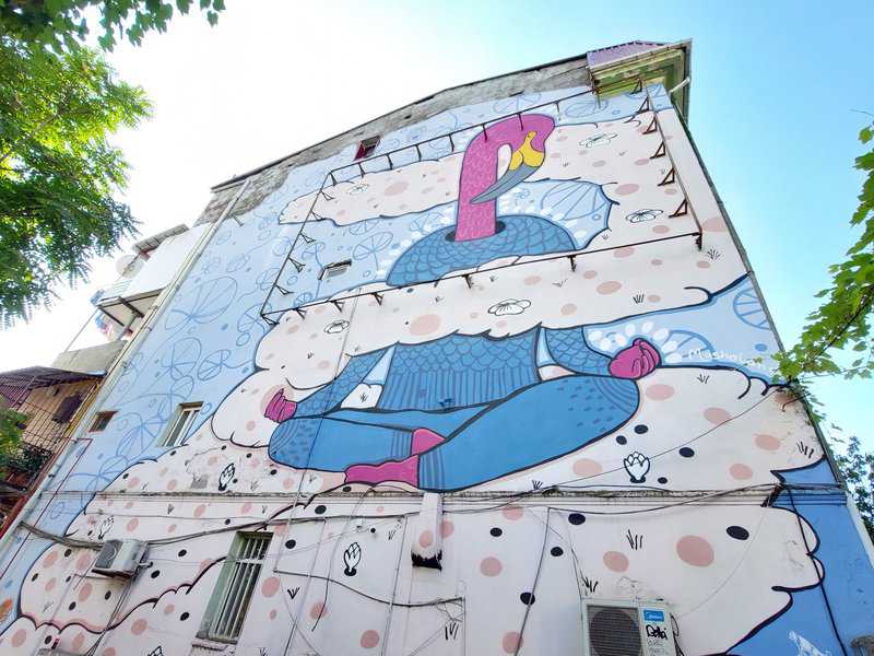 מעבר לפינת הרחוב של בת הים, תמצאו את הכבש הוורוד של Lamb, שכינויו ודמויות הכבשים שלו שואבים ממחוז הולדתו Tusheti, שתושביו מתפרנסים בעיקר מגידול כבשים. הכבשים שלו מפוזרות בכל רחבי המדינה ומסמלות תמיד את גיאורגיה. אל תאמינו לחזות המתוקה שלהן. בציוריו מסתתרת ביקורת חברתית או פוליטית.