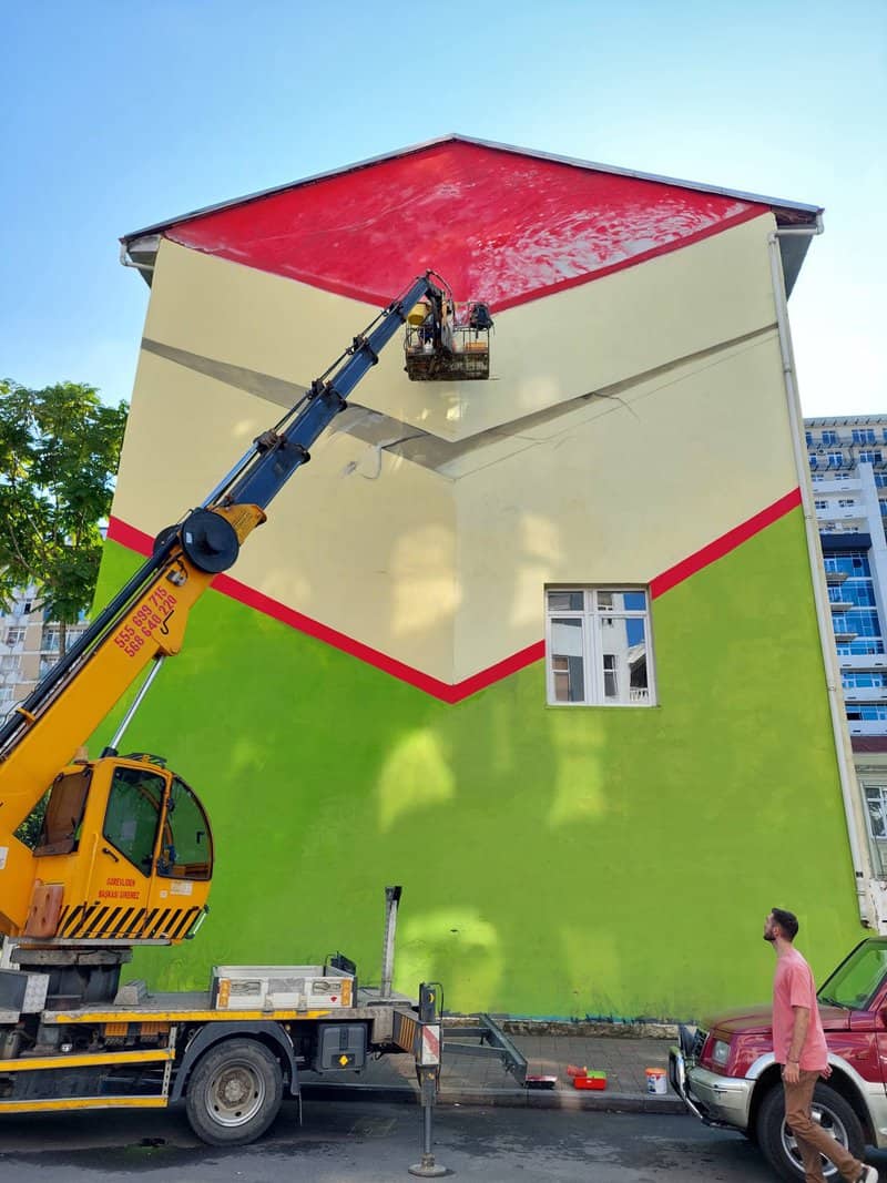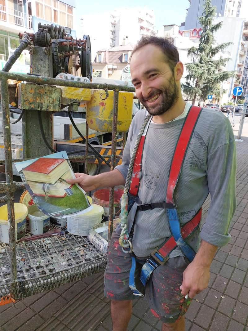 את Dante, אחד מאמני הרחוב הבולטים של תנועת "ניקו", תפסתי על חם בראש המנוף בזמן שצייר את הציור החדש שלו על קיר ענק במרכז בטומי. הוא נעשה במסגרת פסטיבל אמנות רחוב של תנועת ניקו בבטומי, אומר דנטה, וסייעו למימושו חסויות מבנקים וחברת הצבעים Caparol. מחוץ לשעות העבודה שלו במחלקת הקריאייטיב של משרד פרסום הוא מצייר ציורי רחוב גדולי מימדים, שעוסקים במצבו האקולוגי העגום של העולם, ובעיקר בגורלם של זנים נכחדים. גם הפעם. הקיר החדש מציג את מחאתו על היכחדותו של דג החדקן, ובציור הקיר שלו, במקום במים הדג מוטל חסר חיים בין דפי ספר. "אני מצייר על קיר של בית ספר והתקווה שלי היא שילדים ייחשפו לבעלי חיים בסיכון ואולי בעתיד ישפיעו לטובת הישרדותם", הוא אומר. הוא עובד עליו כבר ארבעה ימים ויידרשו לו עוד שישה. "רק שלא ירד גשם". www.dantetheartist.net