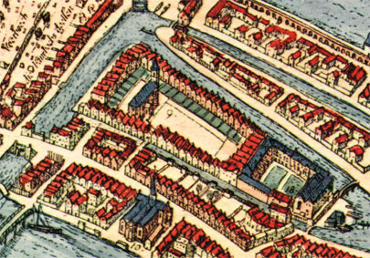 רוב בתי ה"חצר" נבנו מעץ, כמקובל בעיר, אך בעקבות שרפות ענקיות שפרצו בשנים 1421 ו־1452 וכילו רבים מהם וגם את הכנסייה, נאסר בחוק לבנות בתי עץ. מאז ואילך נבנו כל הבתים החדשים מאבן, להוציא מבנה אחד (בית מספר 34) שנבנה בשנת 1470 לערך, והוא אחד משלושת בתי עץ העתיקים ביותר שנותרו עומדים על תלם באמסטרדם.