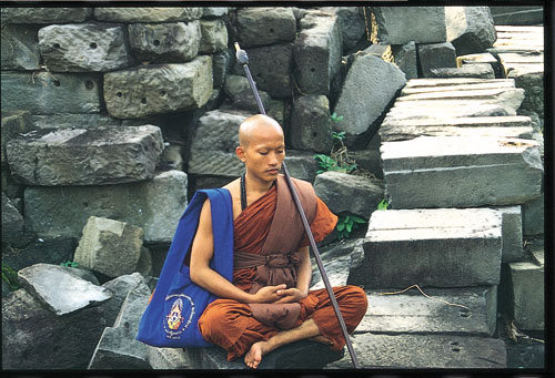 | | נזיר בודהיסטי סמוך לתא פרום, מזרחית לארמון אנגקור טום |