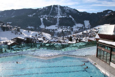 אנסי (Annecy) העיירה אנסי היא בירת מחוז הוט-סבואה (Haute-Savoie) והיא נמצאת על גדותיו הצפוניים של אגם D'annecy. עם מראה ימי ביניימי ציורי, טירה, תעלות מים ורחובות מרוצפים אבן, היא מהווה יעד מושלם לחופשה חורפית. אפשר לצאת לטיול על שפת האגם ממנה נשקפים נופי הרי האלפים המושלגים שנמצאים במרחק נסיעה קצר. בעיירה עצמה יש חנויות קטנות וחביבות, בתי קפה חמימים ומסעדות בהן מגישים אוכל צרפתי עכשווי לצד מנות מסורתיות. אבל ללא ספק, גולת הכותרת של העיירה והאזור כולו הן הגבינות המקומיות: גבינת רובלושון (Roblochon), גבינת תום (Tomme), גבינת בופור (Beaufort) ועוד שלל גבינות מעולות המתאימות לכל טעם. אתר לשכת התיירות של אנסי אוויאן-לה-בן (Evian-les-Bains) אוויאן ידועה בעולם כולו כעיירה ממנה מגיעים המים המינרלים המפורסמים הקרויים על שמה. היא גם עיירת ספא נודעת והיא ממוקמת בקצה הדרומי של אגם Leman (אגם ג'נבה) לרגלי הרי Chablais. עיסוקי החורף כאן כוללים, חוץ מסקי, גם מסלולי קרוס קאונטרי, הליכה עם נעלי שלג, טיולי מזחלות כלבים וטיולים רגליים. מי שהתעייף מהפעילות הגופנית יכול להירגע באחד ממרכזי הספא הנודעים, להמר בקזינו, לטייל על שפת האגם, לעלות להרים ברכבל או לשוט במשך 35 דקות על האגם ולהגיע לביקור בלוזאן, השכנה השווייצרית.  | | בריכת השחייה המחוממת בלה קלוסז. לשחות אל מול הנוף |