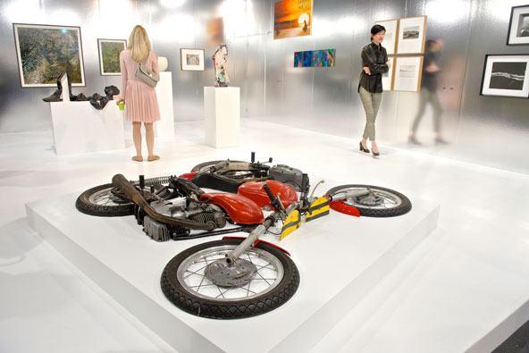 עבור מאות הדילרים, האספנים, האוצרים ובעלי הגלריות זהו חלון הראווה הגדול של מובילי סצנת האמנות, המגמות, השמות החמים, ושבוע עבודה עמוס. עבור התייר חובב האמנות זהו לונה פארק ססגוני של יצירתיות, יופי, מוזרויות, המון אופנה ומגוון ענק של יצירות מכל תחומי הביטוי האמנותי ומכל פינה של העולם. ויש גם נקניקיות ענק טעימות והתחככות באנשים היפים בדוכני הפאטיו של המבנה המרכזי של היריד. וכולם יצלמו. מרשמי הביקור בארט בזל (Art Basel) בשנה שעברה – נדמה שרק מחצית מהמבקרים מביטים ביצירות בעיניים עירומות. כל השאר דרך הסמארטפונים. ויש מה לצלם. האקשן זולג גם לרחובות ומצית בעיר חיים חדשים. בפינות רחוב, בכיכרות, לרגלי הקתדרלה, בחלונות הראווה של חנויות, פורחים פסלים, מיצבים ועבודות וידאו. ברחבת ה"מסה", מתחם היריד, תוכלו לסמוך על כך שגם השנה יפציעו שם אמירות אופנתיות עם טאץ' אישי אמנותי, ומקבצים של צעירים יפנים בשחור מסוגנן יוכיחו ששחור הוא עדיין השחור החדש. ארט בזל 2014. חלון הראווה הגדול של מובילי סצינת האמנות העכשווית | צילום: Art Basel