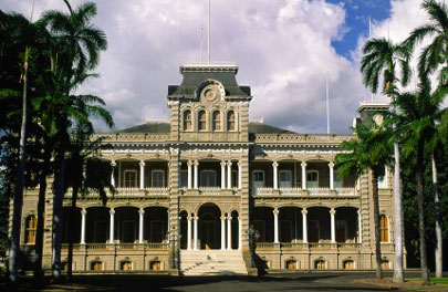 ארמון איולני בהוואי ארמון איולני (Iolani) בהונולולו נבנה בשנת 1882 בסגנון הרנסנס ושימש כביתם הרשמי של מלכי הוואי האחרונים, המלך קאלאקאואה (Kalakaua) והמלכה לילי'אוקאלאני (Lili'uokalani), עד שנת 1893 אז הדיחה ממשלת ארצות הברית את בית המלוכה של הוואי. לאחר ההדחה רוקן הארמון מתכולתו והפך להיות בניין המשרדים של ממשל המדינה. ב- 1969, כשהושלמה בנייתו של בניין הקפיטול של הוואי, עברו לשם משרדי הממשל והחלו עבודות שיפוץ ושיחזור של הארמון. במשך 76 השנים שהארמון שימש כבניין הממשל נמכרו במכירות פומביות יותר מ-100 אלף פריטים וחפצי אמנות של הארמון. עד היום הצליחו לאתר ולהחזיר כ-4,000 פריטים מתוכם. הסיור מתחיל במרכז המבקרים עם הקרנת סרט קצר על ההיסטוריה של הארמון. אחרי שנכנסים לארמון עולים בגרם המדרגות היפיפה, שגולף מעשה ידי אמן מעץ קואה (koa) מקומי, ומסיירים באזור המגורים של משפחת המלוכה שבקומה השנייה. בקומה הראשונה של הארמון נמצאים חדר האוכל הממלכתי, חדר כס המלכות והחדר הכחול. במרתף הארמון הקימו גלריה בה מוצגים תכשיטי הכתר של משפחת המלוכה של הוואי ופריטי ביגוד עתיקים. שעות פתיחה: ישנם סיורים מודרכים בארמון בימים ג'-שבת בין 9:00 ל- 14:15. הסיורים יוצאים בכל 15 דקות ונמשכים 45 דקות. הגלריה פתוחה בימים ג'-שבת בין 9:00 ל- 16:00. |