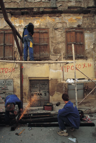 ראש העיר של פסירי שכונת פסירי (Psirri) היא מה ששכונת פלורנטין בתל אביב רצתה והיתה יכולה להיות. ב־1997 עוד נחשבה פסירי ל"אתונה של בלויי הסחבות". עכשיו היא כבר "הדבר הבא", שכונה הפעילה 24 שעות ביממה מבלי לפגוע באופיה המיוחד. הנפחים והזגגים, האופים וממחזרי הגרוטאות, בוני הרהיטים ומרקעי הנחושת עדיין כאן, אך מבוך הסמטאות המרוצפות אבן גדוש עד להתפקע גם בבתי קפה וגלריות וברים וחנויות עיצוב ומועדונים אופנתיים. במסעדות החדשות שנפתחות כאן בכל רגע אפשר לקבל אספרסו קצר בסיום הארוחה. וזה אומר שאנחנו כבר לא בכפר יווני. זאת אירופה. בידידות בולטת פועלים כאן סנדלר שמייצר נעליים מאז שנות השבעים של המאה הקודמת  | | גלריה אפיסטרופי בשכונת פסירי. ב-1997 עוד נחשב השכונה ל"אתונה של בלויי הסחבות", עכשיו היא כבר "הדבר הבא", שכונה תוססת, החיה 24 שעות ביממה תוך שימור אלגנטי של עברה | צילום: באדיבות ניקולס קונדופריאס |